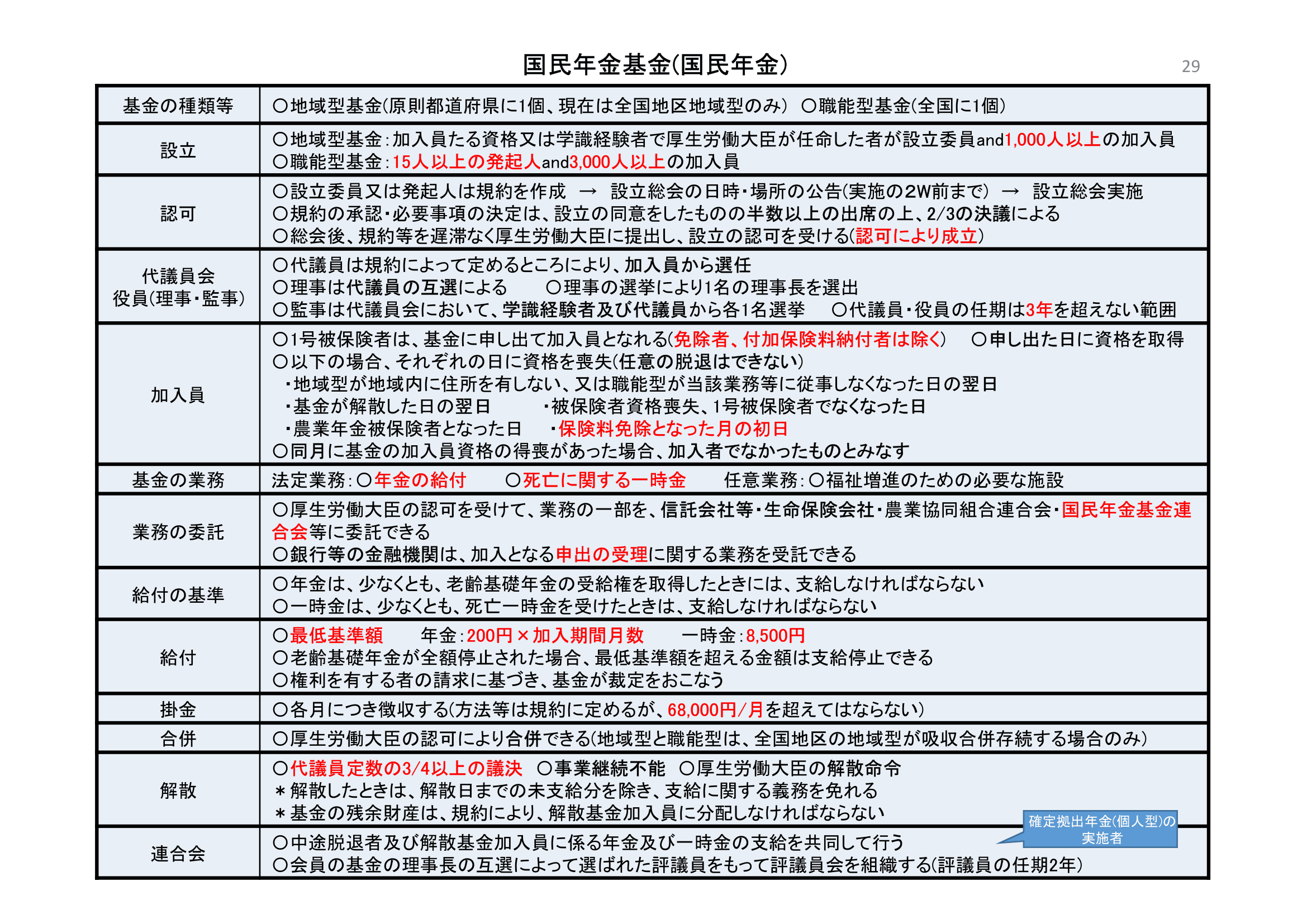 2. ×:基金は「いつでも」解散できるわけではありません。解散するには、代議員の定数の4分の3以上の多数による議決があり、かつ、厚生労働大臣の認可を受ける必要があります。